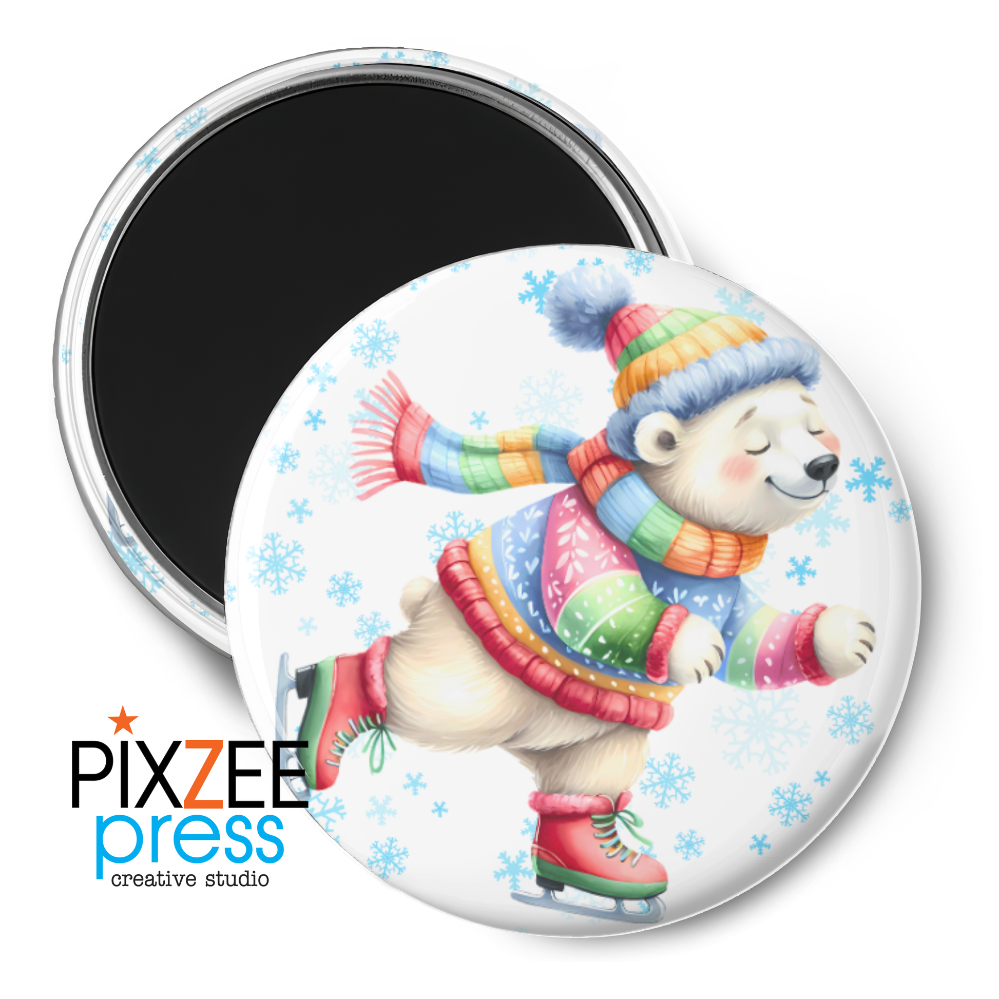 Barry Skater is gliding into the season with style. Dressed in a festive sweater and full of holiday cheer, this happy polar bear is all about frosty fun and cozy vibes. Printed on a 2.25 inch round novelty magnet, he’s perfect for winter decorating, polar bear fans, and anyone who believes in skating through the holidays with a smile.