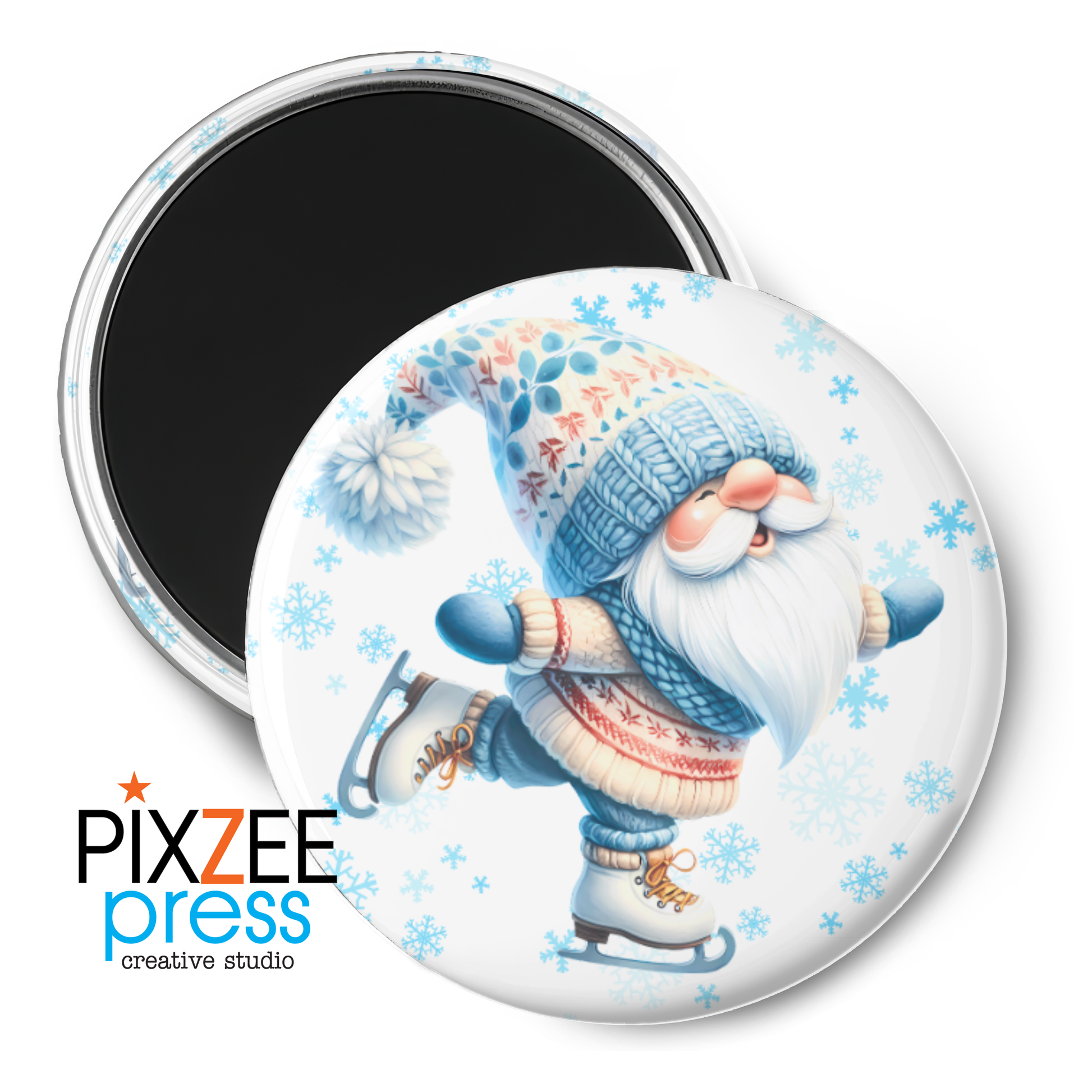 Claus Skater is gliding through the season with a snowy white beard and a matching winter outfit that’s as cheerful as his grin. Dressed in a cozy sweater, hat, and gloves, this happy gnome brings holiday spirit to every spin. Printed on a 2.25 inch round novelty magnet, he’s perfect for gnome collectors, winter decor lovers, and anyone who celebrates the season with a little twirl and a lot of charm.