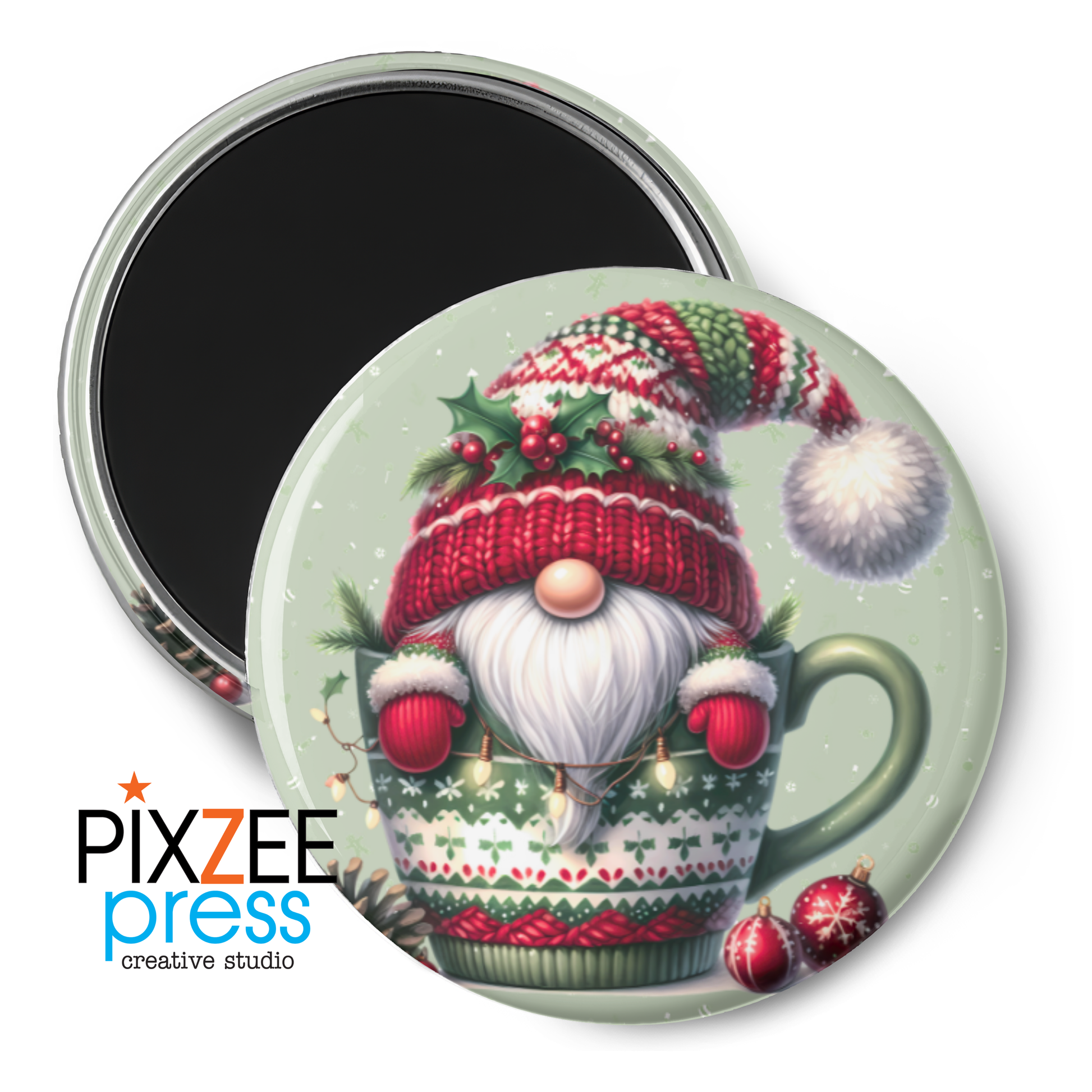 Jolly Humbuck is here to stir up some holiday cheer—one cozy sip at a time. This cheerful little gnome has nestled himself into a festive coffee cup, surrounded by warm seasonal colors and a whole lot of joy. Whether you're decking your fridge, locker, or workspace, this 2.25 inch round magnet adds a playful touch to your winter decor. Perfect for gnome collectors, coffee lovers, and anyone who enjoys a dose of merry mischief