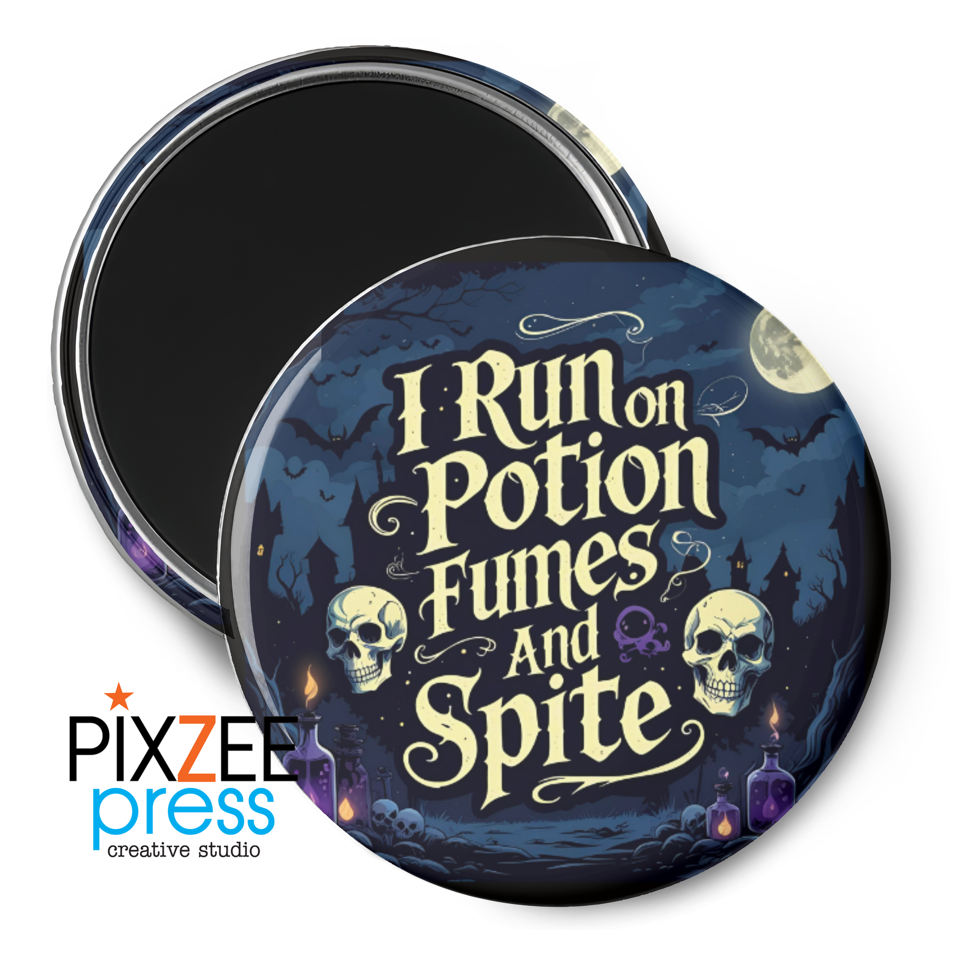 Potion Fumes features a bold Halloween design with spooky flair and bubbling energy. This novelty magnet is perfect for witches, warlocks, and anyone who loves a little magical chaos in their seasonal decor.